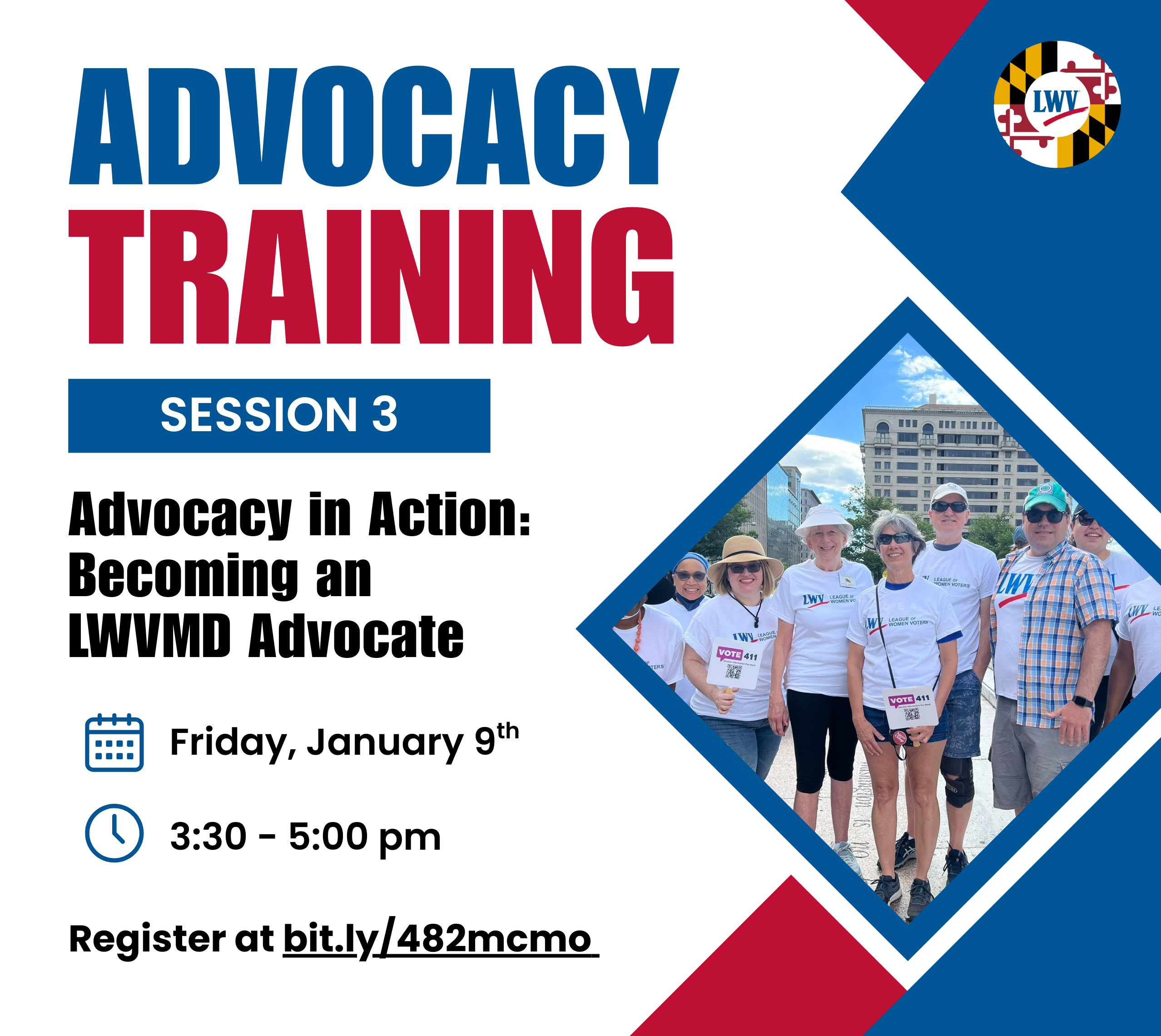 The final session in LWVMD’s three-part advocacy training series is on January 9 at 3:30 p.m.